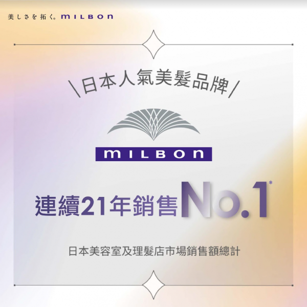 Milbon 已連續21年於日本美容室及理髮店市場榮登同類商品的銷售No.1*,為答謝大家多年來的支持和愛戴,我們定會繼續努力,為客人提供更出色和多元化的專業髮廊用品及服務,讓每一位女性也能感受美麗而自信的秀髮!